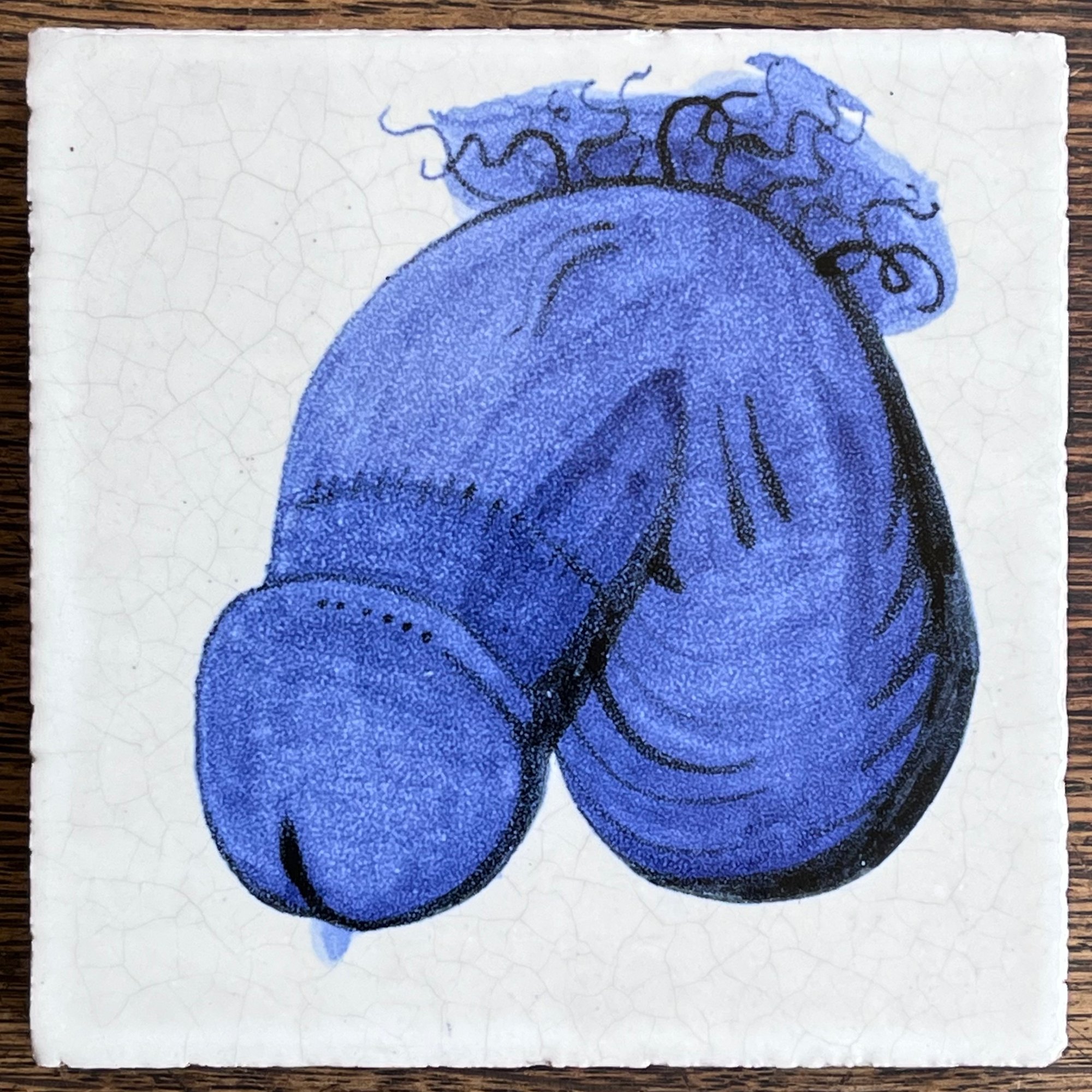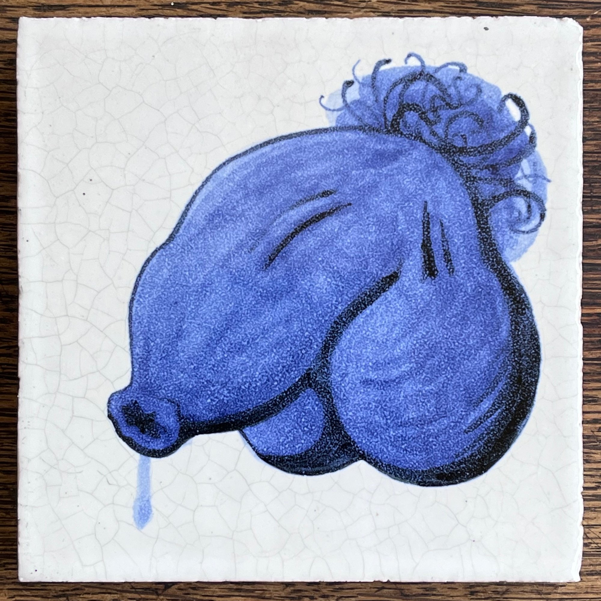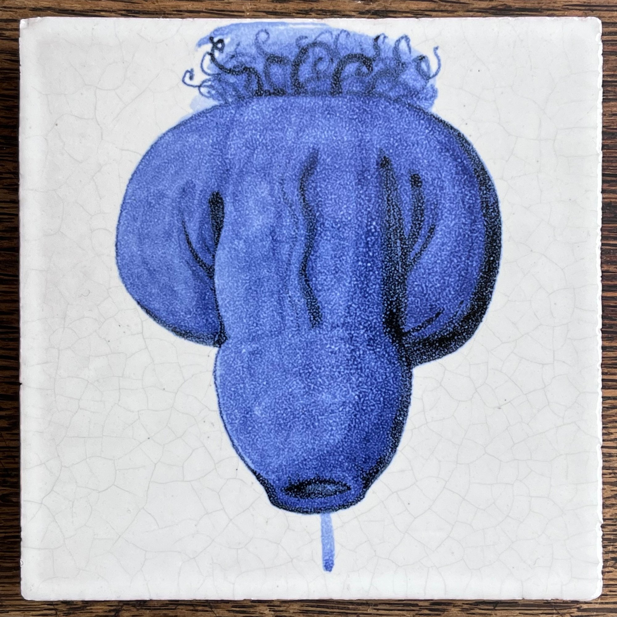 A quartet of soft willies. A perfect start to a Bommer tile collection. Hand-painted delft tile in Cobalt, inspired by a traditional Portuguese azulejos.